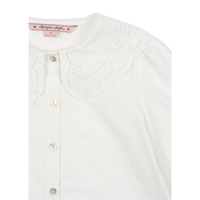 Hvid skjorte med knapper & blondekrave i kanten. Perfekt til festlige lejligheder.