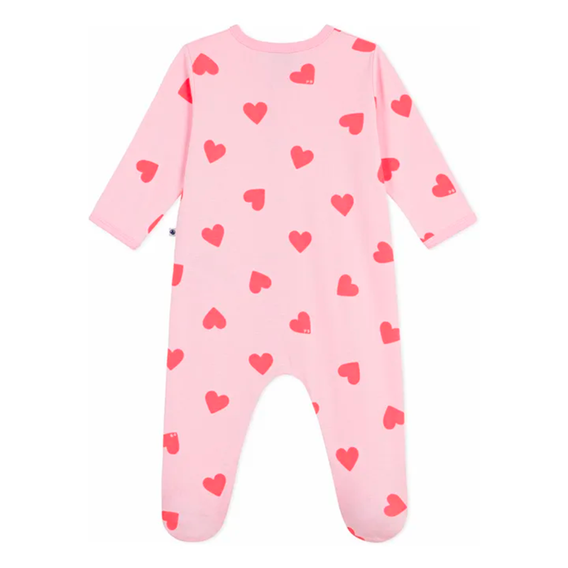 Skøn heldragt i heart print fra franske Petit bateau. Heldragten har trykknapper på forsiden og mellem benene.